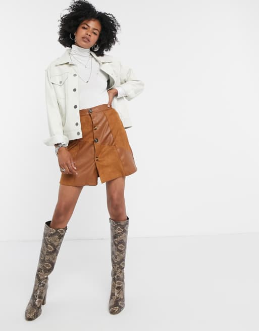 Product id: Patchwork suede mini shop skirt