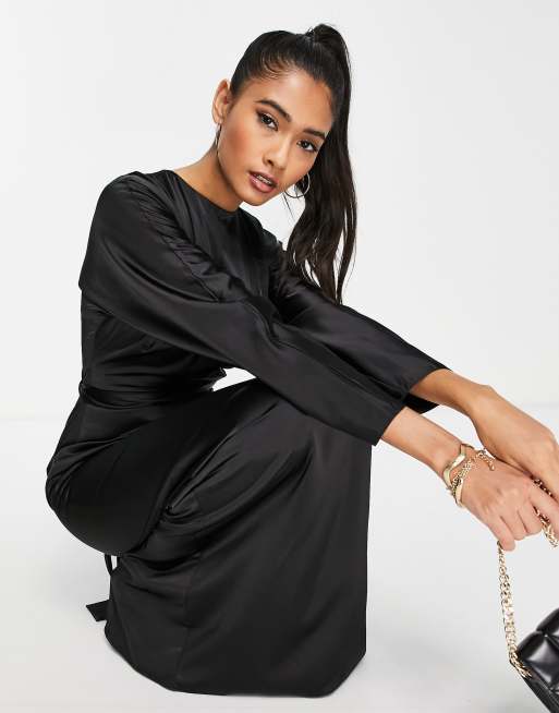 Product id: Asos design midi dress with batwing sleeve and wrap waist in shop satin